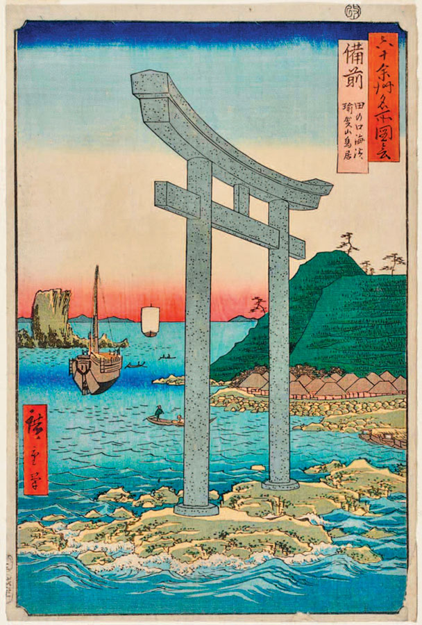 Провинция Бидзэн, берег Танокути, тории Югасан, из серии «Знаменитые места шестидесяти с лишним провинций».