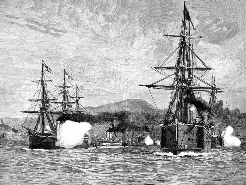 На начало балканской кампании 1877-го года, Босфорский пролив защищали шесть береговых батарей, причем четыре из них располагались севернее Константинополя, для отражения угрозы со стороны Черного моря. Из двух оставшихся одна была на анатолийском берегу, так что русским досталась единственная батарея, вооруженная восемью гладкоствольными пексановскими гаубицами времен Синопа и осады Севастополя. Нанести сколько-нибудь серьезный урон новейшим броненосцам они не могли, а потому, командовавший батареей русский офицер, дав один-единственный залп, увел своих людей прочь. Пока броненосцы мешали с землей орудия (турки поставили их открыто, за земляными брустверами, почти у самого уреза воды), артиллеристы наблюдали за этим с безопасного расстояния. Стреляли британцы неважно, к тому же, большая часть их орудий были дульнозарядными, и на перезарядку уходило слишком много времени.