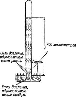 Рис. 3. Высота столба ртути в трубке указывает величину атмосферного давления.