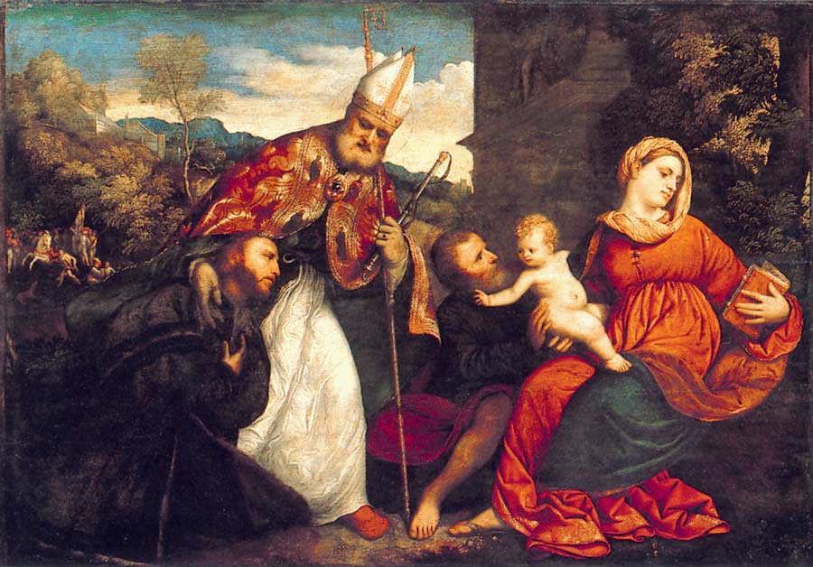 Парис Бордоне. Святое семейство со святыми Амвросием и Донатором. Милан, пинакотека Брера