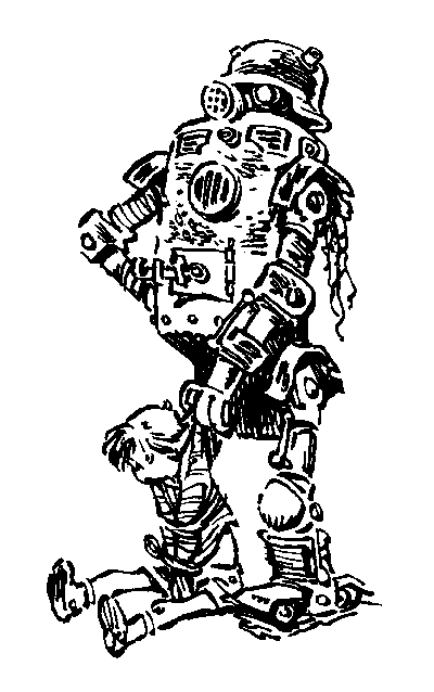 — Ты только попробуй! — старик, вместо того чтобы спасаться, замахнулся палкой и смело пошел на громадного робота.