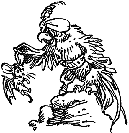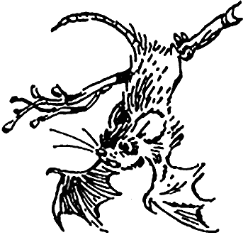 Тут послышался слабый писк, и все увидели, что попугай стоит на выступе стены и держит за круглое ухо небольшую летучую мышь.