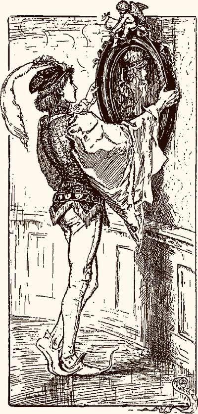 Тут-то феи и забеспокоились, как бы любовь принца к отцу не спутала им все планы. Да-да, у фей были свои планы на Сапфира! И вот подсунули они юноше в комнату зеркало в чёрной раме, какие часто из Венеции привозят. Принц не сразу заметил зеркало, но, вглядевшись, уже не мог оторваться. Ибо видел он не своё отражение, а юную девушку, прелестную, как утренняя заря. Притом изображение было не застывшее – девушка двигалась, жила своей жизнью. Заворожённый принц словно за расцветающим бутоном наблюдал.