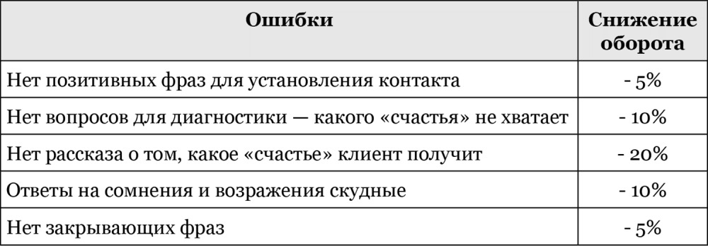3. Отсутствие аргументов о клиентском счастье снижает оборот как минимум на 20 %, а как максимум – на 300 %.