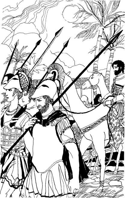 Греки разбили шатры из звериных шкур параллельными рядами, иберийцы расположили кругом свои холщовые палатки, галлы построили шалаши из досок, ливийцы — хижины из сухих камней, а негры вырыли ногтями в песке выемки для спанья. Многие, не зная, где поместиться, бродили среди поклажи, а ночью укладывались на землю, завернувшись в рваные плащи.