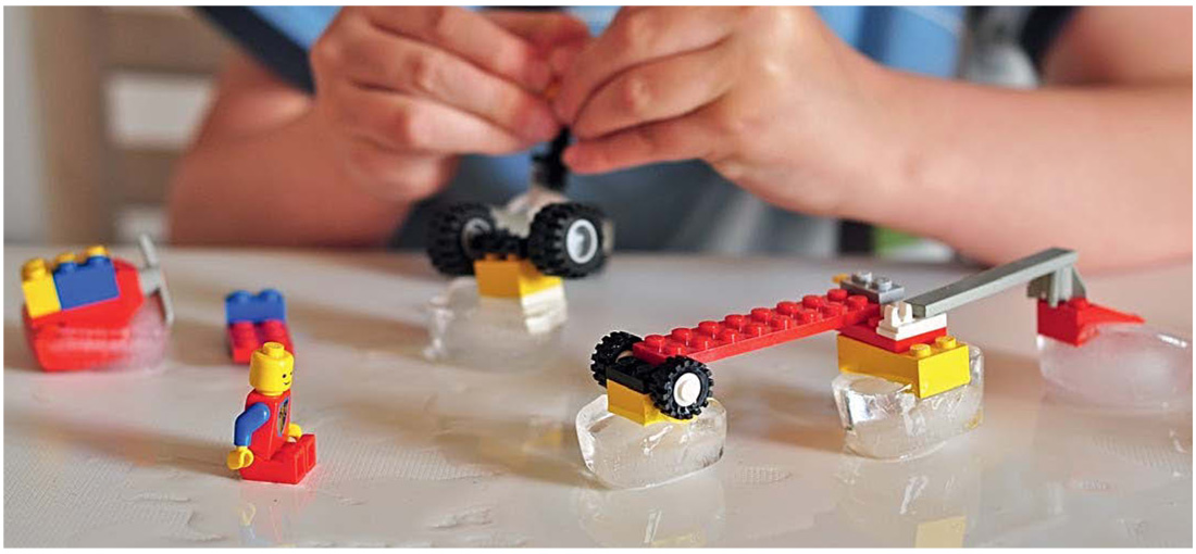 Если ваш ребенок любит Lego, предложите ему поиграть с деталями конструктора, замороженными во льду.