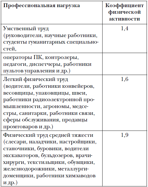 Чтобы определить необходимое количество калорий, которые человек должен получать с пищей каждый день, нужно величину основного обмена умножить на поправочный коэффициент физической активности.