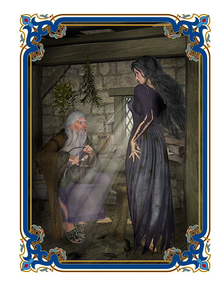 Слуги перенесли пожитки новоявленного вельможи в комнату на втором этаже. Прижимая волшебное зеркало к себе, разбойник закрыл дверь на ключ и опустил засов.