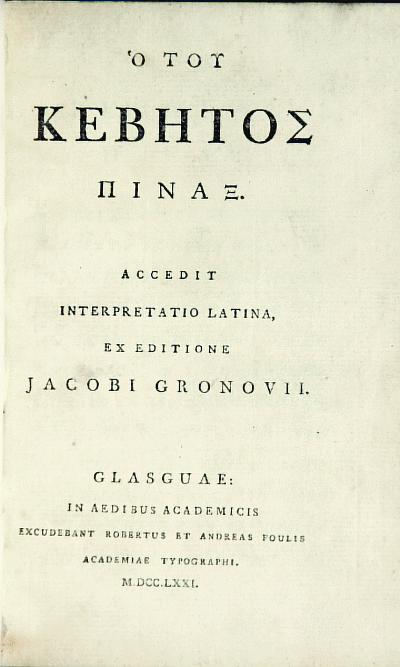 Титульный лист издания Кебета с параллельным переводом на латинский язык. 1771 г.