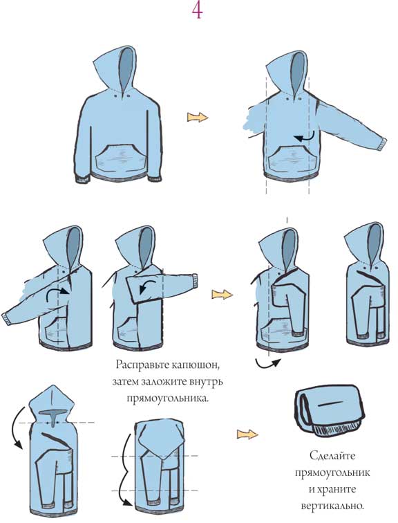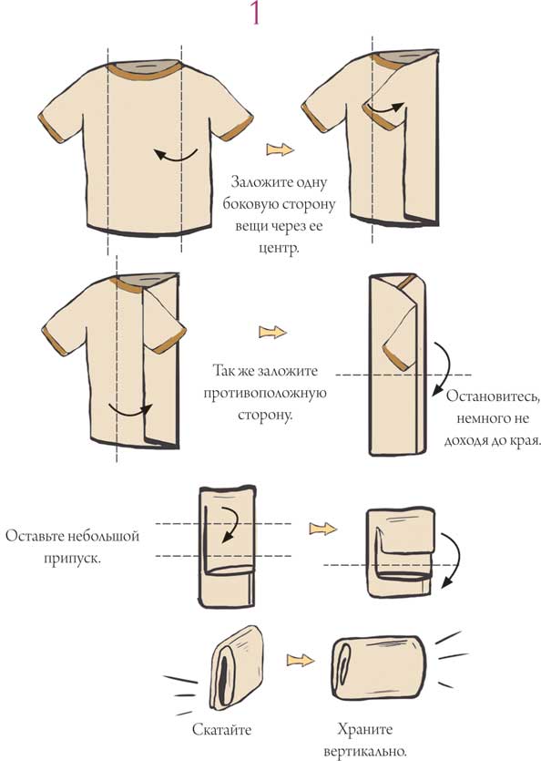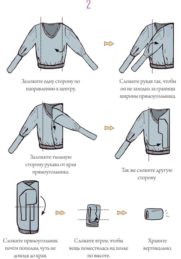 Второе достоинство такого способа складывания заключается в том, что, когда мы руками трогаем вещь, осматриваем ее, мы замечаем ее состояние и можем понять, что она уже отслужила свое.