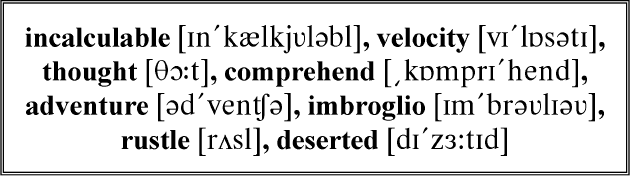His mind raced backwards into the past (его разум устремился назад в прошлое; to race – участвовать в гонках, скачках, забеге и т. п.; мчаться, нестись) with the incalculable velocity of thought (с невычислимой = невероятной скоростью мысли), and he began to comprehend his day’s adventures (и он начал понимать свои приключения этого дня), to conceive them as a whole (представлять их в целом: «как целое»), and to recognise the sad imbroglio in which his own character and fortunes had become involved (и осознавать досадную запутанную ситуацию, в которую его собственная личность и судьба оказались вовлечены; imbroglio – путаница, недоразумение; запутанная, сложная ситуация; sad – печальный; досадный). He looked round him as if for help (он оглянулся вокруг, как если бы /ища/ помощи), but he was alone in the garden (но он был один в саду), with his scattered diamonds and his redoubtable interlocutor (со своими разбросанными бриллиантами и своим грозным собеседником); and when he gave ear (а когда он прислушался: «дал ухо»), there was no sound but the rustle of the leaves (не было ни звука, кроме шелеста листьев) and the hurried pulsation of his heart (и учащенного биения его сердца). It was little wonder if the young man felt himself deserted by his spirits (было мало удивительного в том, что молодой человек ощутил, как его покинуло присутствие духа: «почувствовал себя покинутым присутствием духа»; to feel – чувствовать), and with a broken voice repeated his last ejaculation (и дрогнувшим голосом повторил свое последнее восклицание) – “I am lost (я погиб)!”
