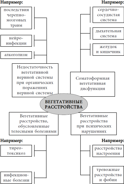 О «дистонии» и устранении этого «сбоя» мы будем говорить на протяжении всей этой книжки. Но сейчас мне бы хотелось сказать о том, какие вообще бывают болезни вегетативной нервной системы, а она, как и любой орган нашего тела, может заболеть. Вегетативные расстройства могут быть вызваны самыми разными причинами.