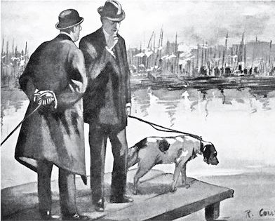 Несколько маленьких яликов и лодок виднелось на воде и у пристани. Мы подводили Тоби поочередно к каждой из них, но хотя он весьма добросовестно обнюхал все, однако, очевидно, ничего не узнал.