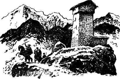 Тогда те, что ехали сзади всадников, остановились и стали совещаться. Они стреляли по башне, но у башни были такие старые, толстые стены, что никакими пулями нельзя было их пробить. Тогда несколько всадников пустили лошадей вскачь, но Данел заранее положил на тропе большие камни, и лошади перед ними остановились. Еще два всадника упали с седел вниз головой. И мать Данела зарядила ему снова винтовку. А он стрелял из разных щелей и окон, чтобы казалось, что в башне много народу.