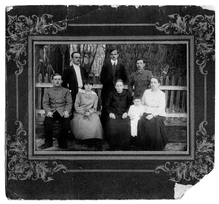 В нижнем ряду слева направо: брат Эмануил, жена брата Александра – Мария, мать – Доротея, предположительно, ребенок Ермаковых и сестра Елизавета.