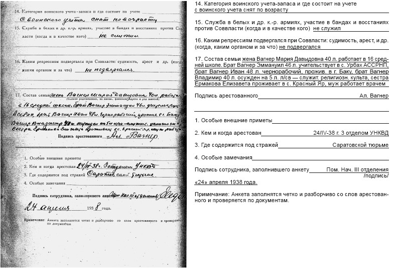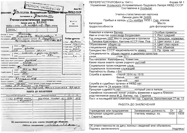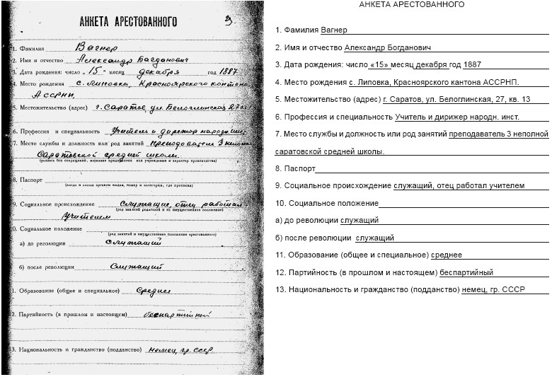 Еще одной находкой в личном деле стала следственная фотография Александра. Обнаружив ее бледную ксерокопию, я написал очередной запрос: прошу выслать оригинал. Я уже знал, что как родственник репрессированного имею право на получение сохранившихся в делах фотографий, личной переписки и документов. Через полтора месяца я держал в руках последнее прижизненное фото Александра Богдановича Вагнера – поволжского немца, учителя и музыканта, заключенного Усольлага.
