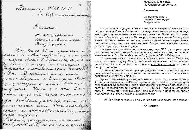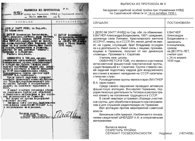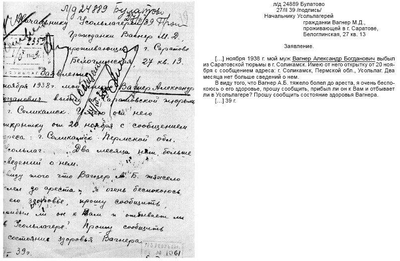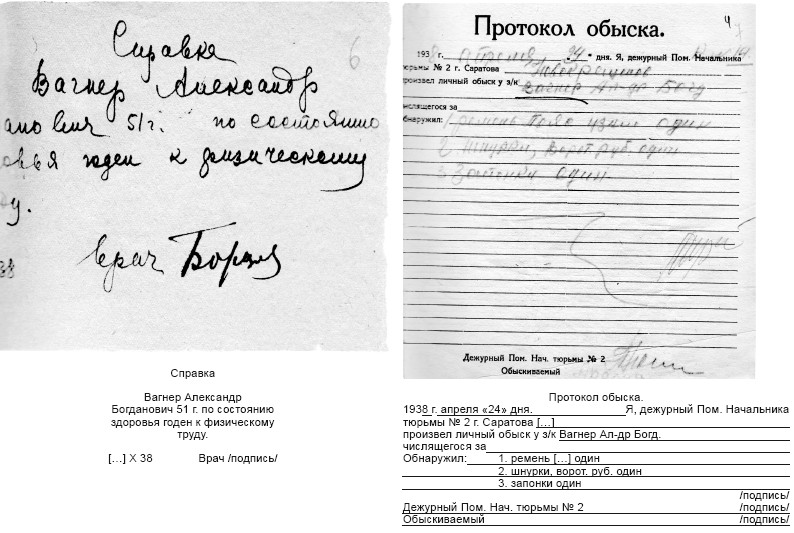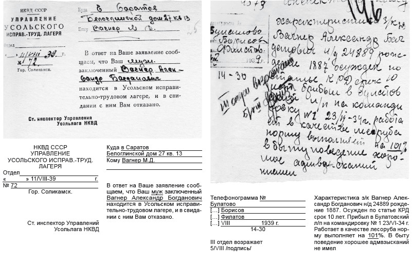 Его вдова Мария Давыдовна в одном из писем в органы безопасности упоминает свидетельство о смерти Александра, выданное Саратовским ЗАГС. Дата смерти ее мужа, согласно этому документу, – 1946 год. Но в лагерном акте о смерти, как мне теперь известно, был указан 1945 год. Так я впервые в своей поисковой работе столкнулся с выдачей родственникам официального документа с фальшивыми данными о смерти. Позже их встретится множество.