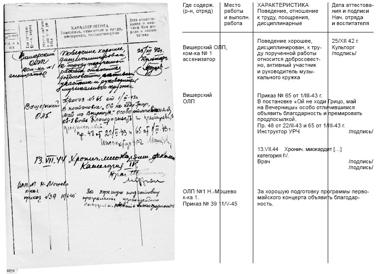 Похоже, последней рекомендации в лагере следовали: Александр получал поощрения и благодарности, выглядящие особенно страшно и нелепо на фоне медицинских диагнозов. В марте 1943 года за участие в постановке «Ой, не ходи, Грицо, май на вечерицы» ему объявили благодарность и премировали «предпосылкой». В мае 1945-го – уже почти живой труп – получил благодарность «за хорошую подготовку программы первомайского концерта».