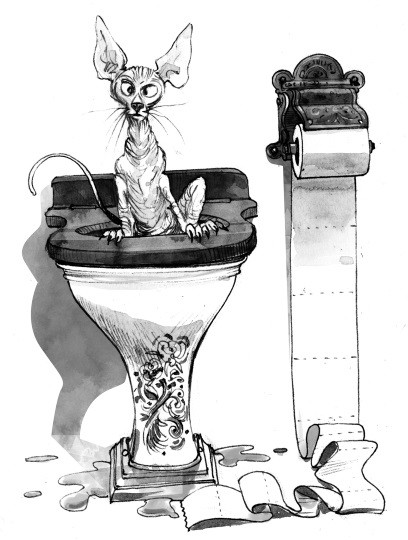 Кот так разогнался, что не сумел затормозить и, с разбега вспрыгнув на край унитаза, не удержал равновесия и шлепнулся внутрь фарфоровой чаши.