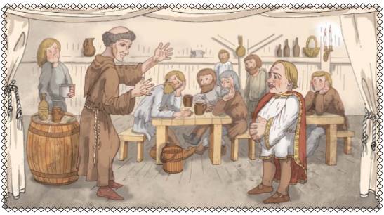 А в самом вольном городе Киль трактирщик Ральф в своем заведении на улице Дюстенброкервег тоже решил порадовать гостей, подав им жаркое из дикого кабана и ревневый кисель. На эти угощения собралась половина города, так что в трактире совсем не было свободного места. Гости расселись даже на полу. Еле втиснулись в трактир музыканты; заиграли мандолина и флейта, и всем стало весело! Поддержала праздник и лучшая портниха города, фрау Адалинда, которая жила рядом с трактирщиком Ральфом и дружила со всей его семьей. Женщина сшила маленькие флажки и развесила их по городу, так что вокруг все стало очень красиво.