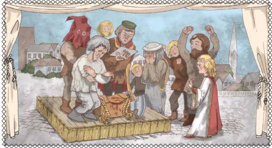 Случилось это летним днем 1313 года. На Ратушной площади вольного города Киля собралось много народу. Судили воришку Клауса, который украл у фрау Бруннхильды, торговки тканями со Старого рынка, кусок сукна. Клауса ненавидел весь город, потому что это был злой и плутоватый юноша. Ничего полезного в городе Клаус не делал и совсем не помогал матери, с которой жил на Корабельной улице. Целыми днями хулиган просто слонялся по городу и искал чем бы набедокурить горожанам. Все обрадовались, что, наконец, Клаус попался на воровстве. По законам вольного города Киль (в те времена законы были очень строгие) пойманному вору должны были отрубить руку.