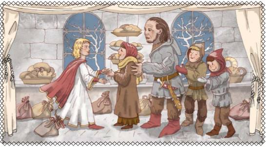 Та зима выдалась необычайно холодной. Замерзла городская гавань с торговыми кораблями, закрылись лавки Старого рынка и Ратушной площади, перестали работать ремесленники. Жители вольного города Киль мерзли и голодали. К концу декабря в городе стало совсем плохо. И тут в день Йоля, когда по старой традиции викингов отмечается зимнее солнцестояние, принцесса Альбертина решила устроить большой праздник. Она заказала у торговцев много подарков и угощений. Фрейлины Эмили и Катрин сбились с ног, обегая лавочников с праздничными заказами.