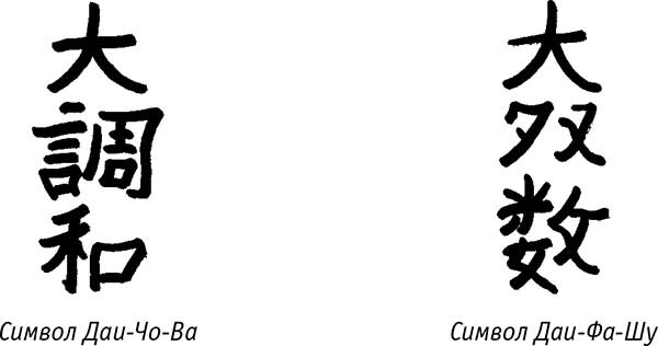 На этих двух ступенях передают два символа. К пятой ступени «приписан» символ Великая Гармония (Даи-Чо-Ва), а к шестой – Великое Разделение (Даи-Фа-Шу). Эти символы соответствуют Инь и Ян и считаются дополнительными инструментами для работы с Рэй-Ки.