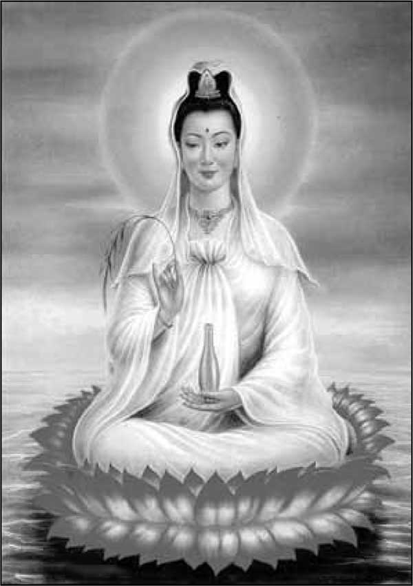 Роберт Адамс [8д]Гуань Шинь – это Богиня Милосердия (Сострадания), одно из наиболее популярных божеств буддизма. Как Бодхисаттва сострадания, она слышит плач всех существ («созерцающая звуки мира», или «внемлющая звукам мира»). Цвет этой богини – лавандовый, или мягкий фиолетовый. Её пять главных достоинств – милосердие, скромность, храбрость, правосудие и мудрость.
