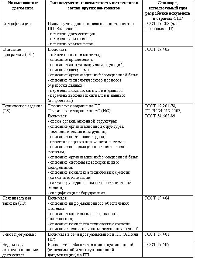 В таблице 3 представлен полный перечень документации (программной и эксплуатационной) на АС согласно ГОСТ (или ИС, которая может считаться видообразующим типом АС), который может быть использован разработчиком.