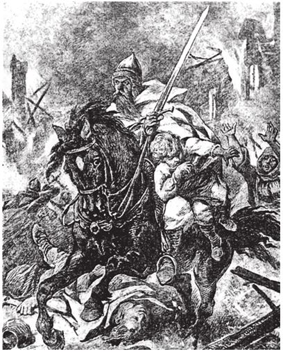 Нападение крестоносцев. Худ. Ю. Косак, конец XIX в.
