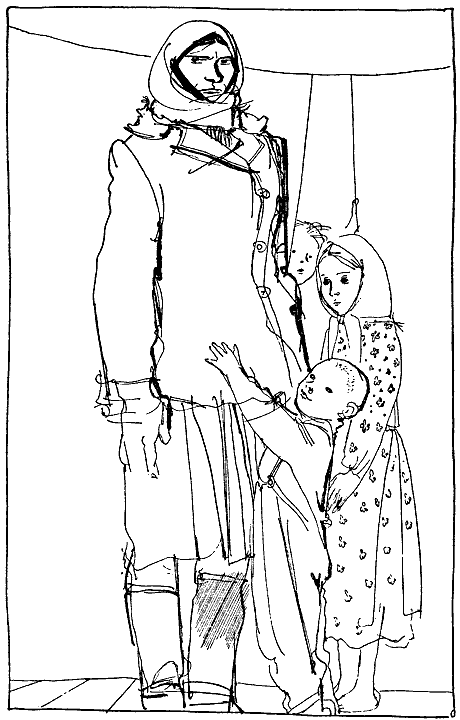 Она еще не открыла двери, как из-за перегородки высыпала детвора — две девочки, приподняв занавеску, остались на выходе, а лет пяти мальчик, босой, в рваных, на шлейках штанишках, бросился к порогу навстречу: