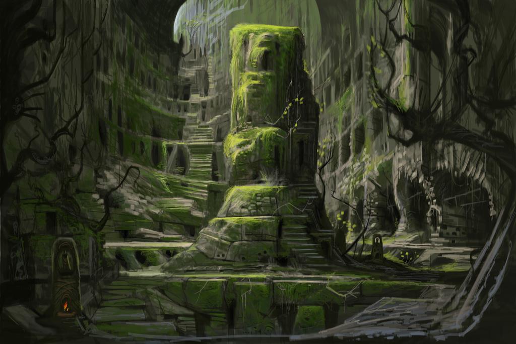 Вдоль колонны так же вились ступени, но, по большей части, разрушенные. Сам же обелиск сложно было рассмотреть внимательно — мох свисал с него настоящим саваном. Обвитый плющом, растерзанный сорняками, он одиноко стоял в свете солнца…