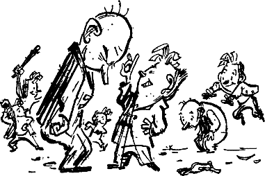 Неизвестно, чем бы закончилось для гостей хождение по стадиону, если бы перед ними неожиданно не вырос почетный гражданин Большой Нетаки — сам Нетактак Наоборото. Разбросав навалившихся на него соотечественников, он поднялся и, расставив руки, воскликнул:
