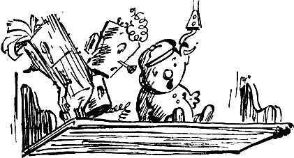 — Что это за товар? — удивился старший продавец. — Какой фабрики?… Спокойно, спокойно, товарищи, надо выяснить, откуда появились эти игрушки.