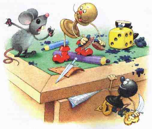Когда мышонок Пик по шнуру от настольной лампы забрался на стол и попал на поле сражения, то прежде всего столкнулся с черным офицером. Он вежливо обнюхал его и спросил: