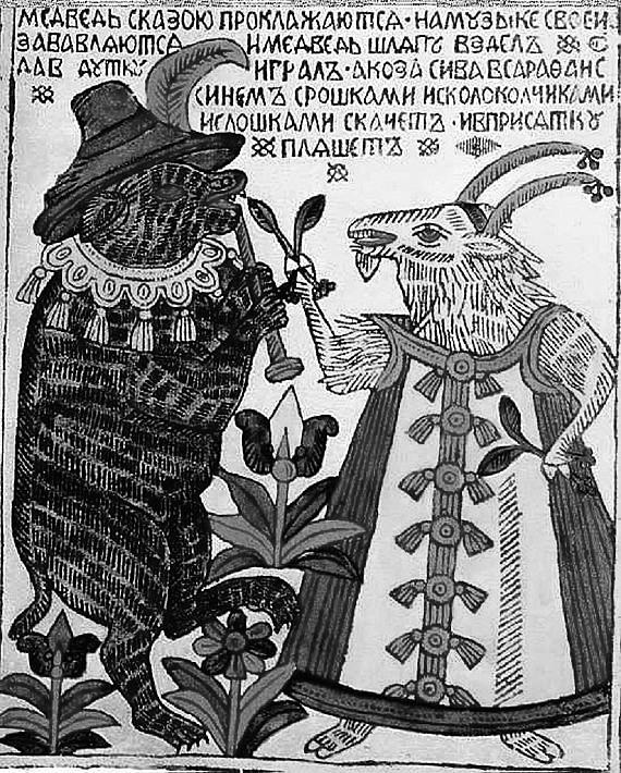 Медведь и коза пляшут на Масленицу. Лубок. XIX в.