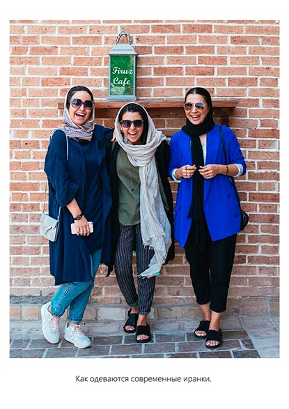 И иранцы, и иностранцы (с того момента, как сойдут на иранскую землю с борта самолета) обязаны соблюдать мусульманскую форму одежды (хиджаб). Основные ограничения касаются женщин: как бы ни было жарко, они обязаны носить длинные брюки (юбку до пят), необлегающее одеяние – куртку / пончо длиной как минимум до колен – и платок, закрывающий шею и волосы. Вопреки расхожему мнению, лицо в Иране скрывать не принято. Одежда должна быть свободной и желательно неброской. Хотя макияж теоретически считается неисламской вольностью, на деле иранки активно пользуются пудрой, тушью и помадой, так что никто не запрещает вам сделать то же самое. Мужчинам легче, чем женщинам, но и им, например, нельзя носить шорты, разрешены только длинные брюки. Рубашки и майки с коротким рукавом распространены среди городской молодежи.