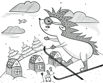 Ёжик на лыжах мечтал прокатиться,