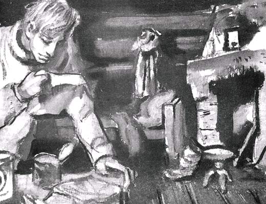 Большую часть жилого пространства занимала кирпичная печь, похожая на камин, в которой валялись обгорелые сосновые головешки и груды золы. Почти вся мебель была самодельной. Дверь рядом вела в кухню, а в дальнем конце комнаты помещался вход в спальню. Тут и там в беспорядке валялись одежда и обувь — тяжелые лыжные ботинки, старые джинсы, фуфайка и рваная шапка.