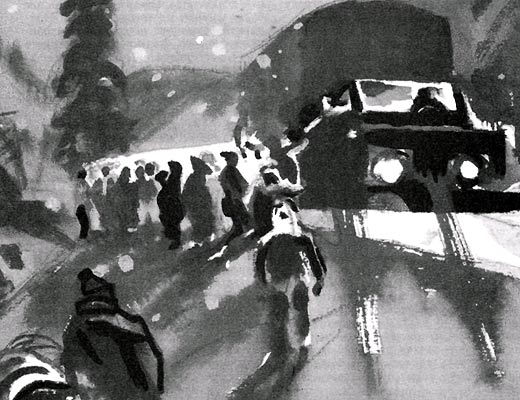 Я высунулся из кабины и направил в лица толпившихся вокруг людей мощный луч фонаря.