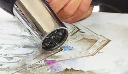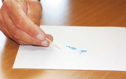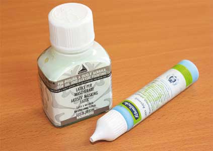 Техника акварельной живописи с первого взгляда проста, да и много особых материалов не требуется, но все же существуют свои хитрости. Одним из секретов является маскирующий состав. Он используется для того, чтобы сохранить фрагменты бумаги без краски. Для этого специальный резиновый состав наносится на детали рисунка и сушится, после этого можно писать работу. По окончании работы маскирующий состав аккуратно снимается. Его можно снять ластиком или аккуратно скатать пальцами – резиновый слой легко снимется с бумаги. Состав продается в мягких тюбиках с тонким и длинным носиком. Можно аккуратно выдавливать его из тюбика, проводя линии по подготовленному предварительному рисунку. Для еще более тонких линий используйте зубочистки. Для больших деталей удобнее использовать маскирующий состав в бутылочке и наносить его на бумагу кистью. По окончании работы кисть хорошо промойте, чтобы в ней не засохли остатки состава и не склеился ворс.