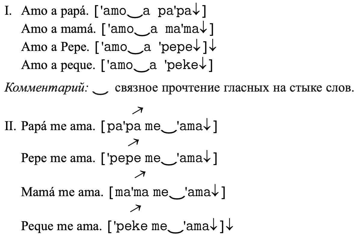 [ e ] – гласный переднего ряда, среднего подъема, закрытый; этот гласный не похож ни на русский e в слове ель, ни на э в слове этаж; ср. в русском пена и в испанском pena;