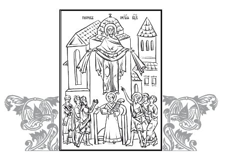 Видевше Тя святый Андрей со Епифанием в церкви на воздусе за христианы Богу молящуюся, познаша, яко Матерь еси вознесшагося на небо Христа Бога нашего, и, припадше на землю, радостно покланяхуся всеблагому покрову Твоему, зовуще: Аллилуиа.