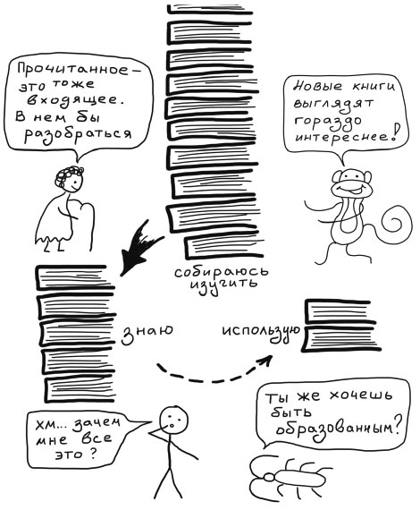 Чтобы понять, насколько несоразмерны эти три столпа, давайте вспомним, что на задней обложке многих книг по бизнесу пишут что-то вроде: «Время прочтения – 4,5 часа». Этим издатель, видимо, пытается намекнуть: «Ты прочтешь книгу быстро, поэтому купи сразу три». Но это только прочтение. Если книга достойная, мы месяцами ее осмысляем и годами применяем на практике. Часы, месяцы, годы – вот оно, примерное соотношение масштабов получения информации, осмысления и применения ее на практике. Зацикливаться на том, сколько времени займет чтение книги (если наша задача – обретение мудрости), – примерно то же самое, что и фокусироваться на продолжительности процессов во время брачной ночи в контексте воспитания будущего ребенка.