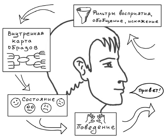 Такая же механика восприятия описана, скажем, в нейролингвистическом программировании: «Карта местности – это не сама местность» [10] .
