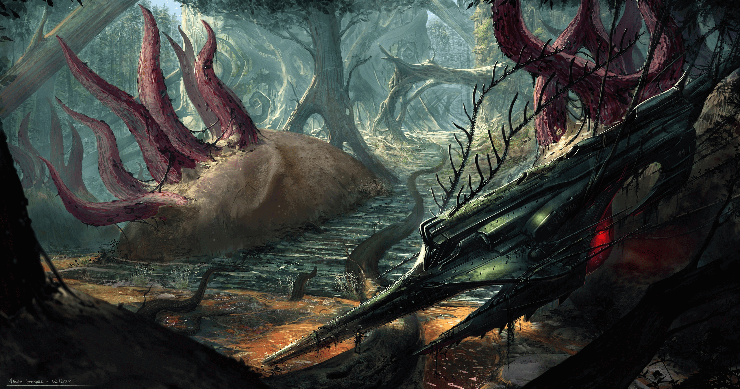 Вместо травы и почвы, под ногами хрустела галька, камни и отсохшие, опавшие шипы терний. Вместо кустов и цветов - странные наросты, из которых тянулись алые, живые шипы. Жуткими щупальцами они ловили в воздухе малейшие признаки жизни и мгновенно разрывали их на кровавые ошметки.