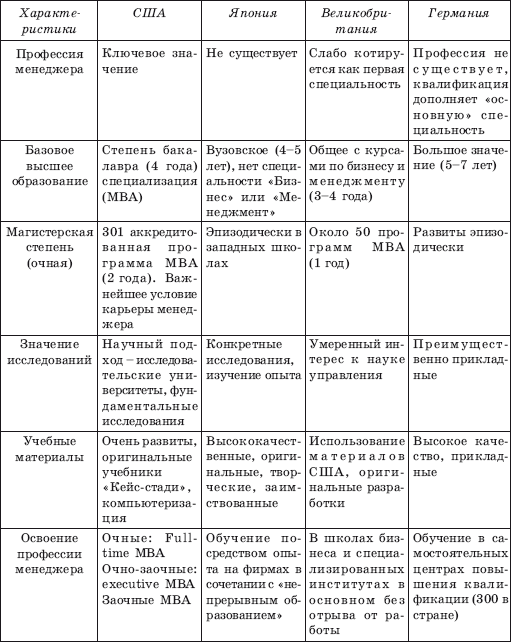 В последние годы в связи с развитием международного менеджмента и проникновением транснациональных компаний практически во все развитые и развивающиеся страны мира уже произошла институционализация «смешанной» модели обучения менеджменту. Поэтому большой интерес приобретает опыт ведущих стран мира по сближению национальных моделей обучения (табл. 2.6 [23] ).