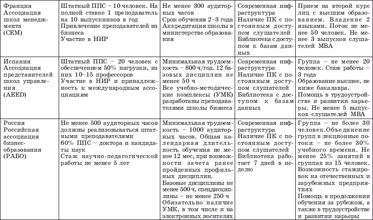 Из–за различий в моделях образования и национальных особенностей стран Европы, Америки и Азии критерии оценки качества различны. Наиболее целесообразно это сделать по одному из видов экономического образования, сопоставимого по уровню профессиональной квалификации и продолжительности обучения (табл. 2.8).