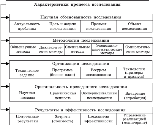 3. Организация исследования – порядок проведения, основанный на распределении функций и ответственности, закрепленных в регламентах, нормативах и инструкциях. В этом разделе разрабатывается техническое задание, программа исследования или бизнес–план. Особое внимание уделяется ресурсам исследования комплексу средств и возможностей (например, информационных, экономических, технических, трудовых и пр.), обеспечивающих успешное проведение исследования и достижение его результатов.