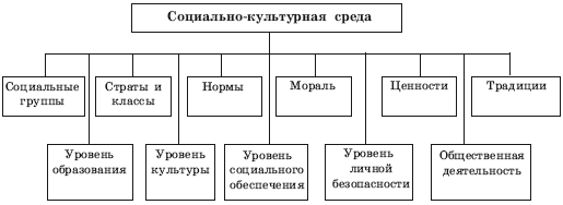 Социально–культурная среда. Образование, как никакая другая услуга, приобщено к культуре, неотделимо от нее. Культура – это сложный комплекс, состоящий из набора ценностей, идей, артефактов и других значащих символов, которые помогают индивидуумам общаться, а также интерпретировать и оценивать друг друга как членов общества (рис. 5.5).